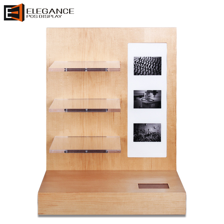 工廠定制的天然木地板和柜臺展示架,用于眼鏡,太陽鏡和鏡片